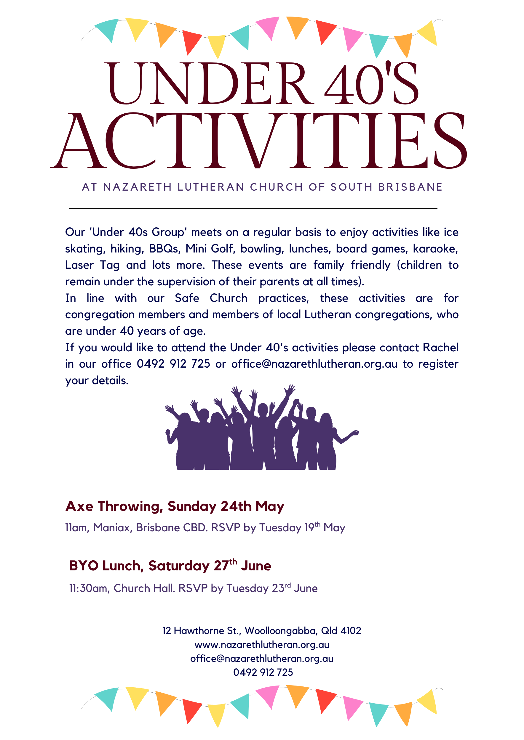 Nazareth Under 40’s Group events are open to members of our congregation and other Lutheran congregations who are under 40 years of age.